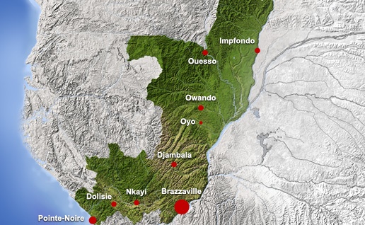 A República do Congo-Brazzaville situa-se a sul dos Camarões sendo também limitada a norte pela República Centro-Africana, a leste e a sul pela República Democrática do Congo, através do Rio Congo, a sul por Angola (através do enclave de Cabinda) e a oeste pelo Oceano Atlântico e pelo Gabão. As 3 cidades mais populosas são Brazzaville (Capital do país), Pointe-Noire e Dolisie.